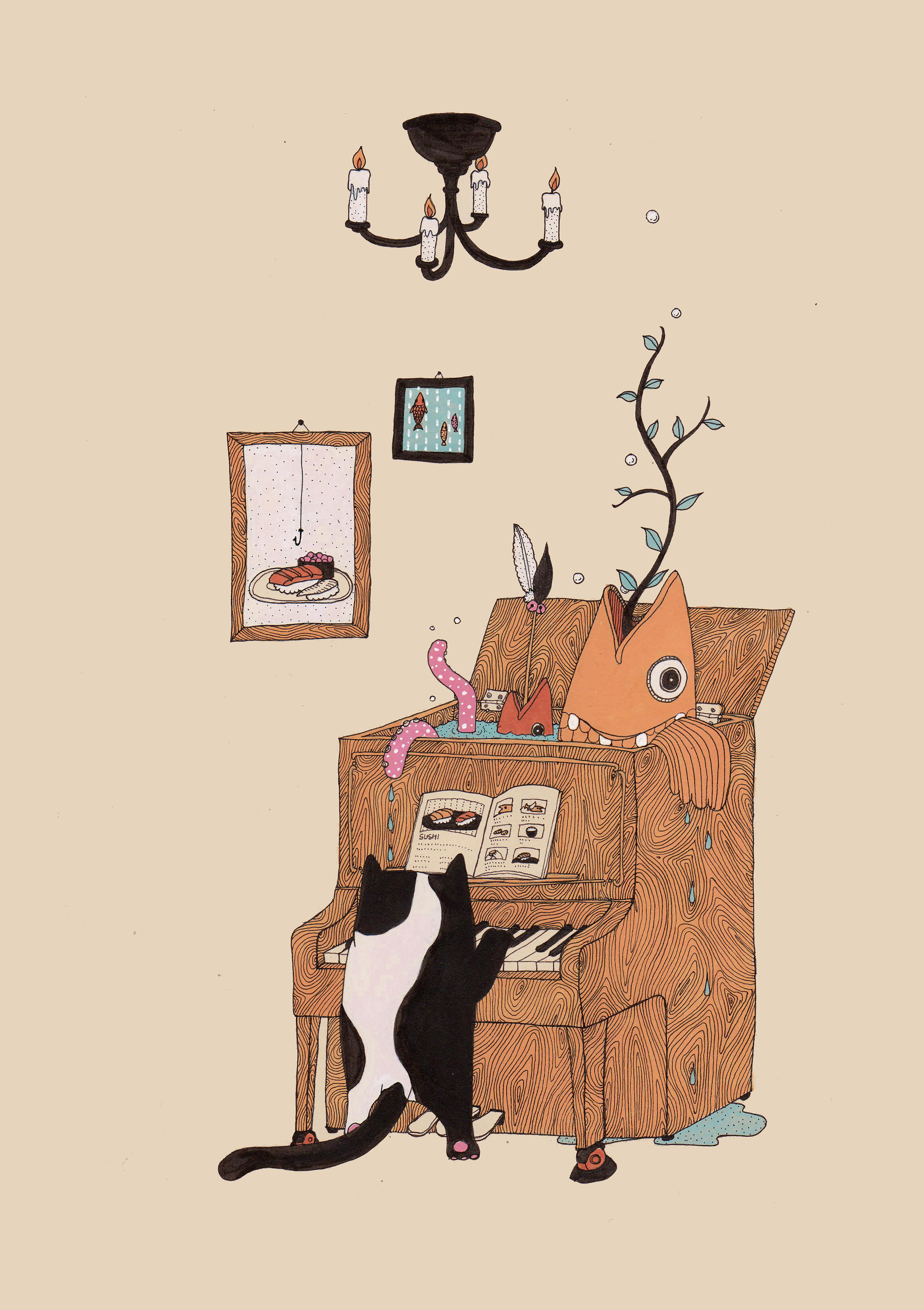Painting with Acrylic ink and watercolor for Gallery exhibitions through 2016-2020